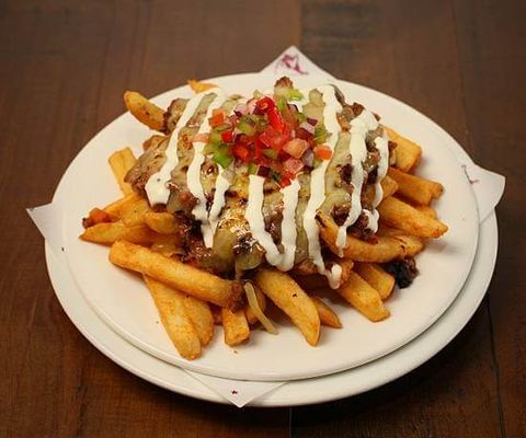 Fries topped with Smoked Brisket, melted Cheese, Pico de Gallo Salsa & Chipotle Mayo