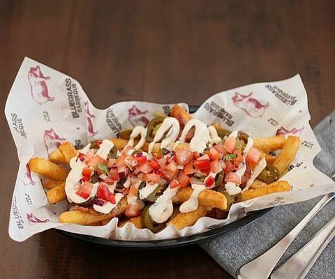 Fries topped with smoked pulled pork, shredded cheese & salsa & chipotle mayo.