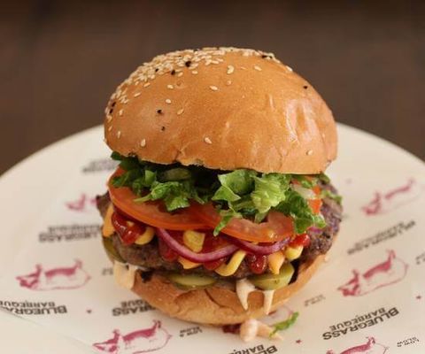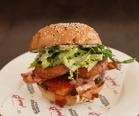 Hand-pressed patty, jalapenos, Monterey Jack cheese, bacon, onion, ring, lettuce mayo & slightly spicy Memphis BBQ sauce.