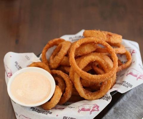 Hand-pressed patty, smoked 14-hour smoked brisket, cheese, onion ring, lettuce & blue cheese sauce.