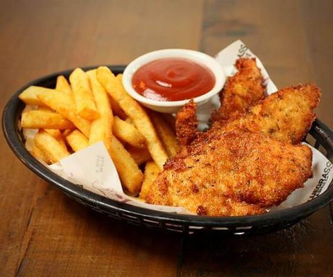 Grilled chicken tenders, cheddar, bacon, lettuce, tomato, ranch, & Memphis BBQ sauce, on brioche roll