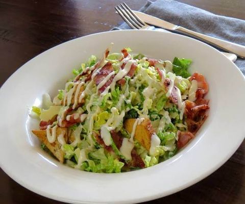 Bacon, fresh cos lettuce, croutons, parmesan, & creamy Caesar dressing.