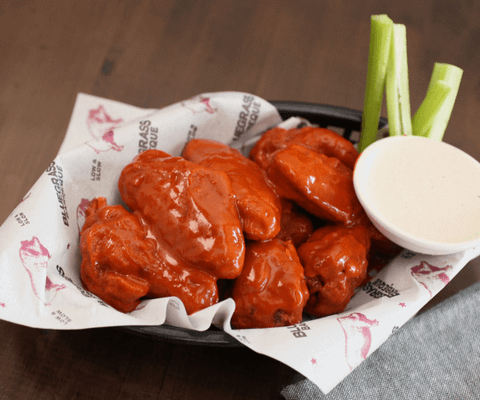 Buffalo wings, extra burn. With Blue Cheese